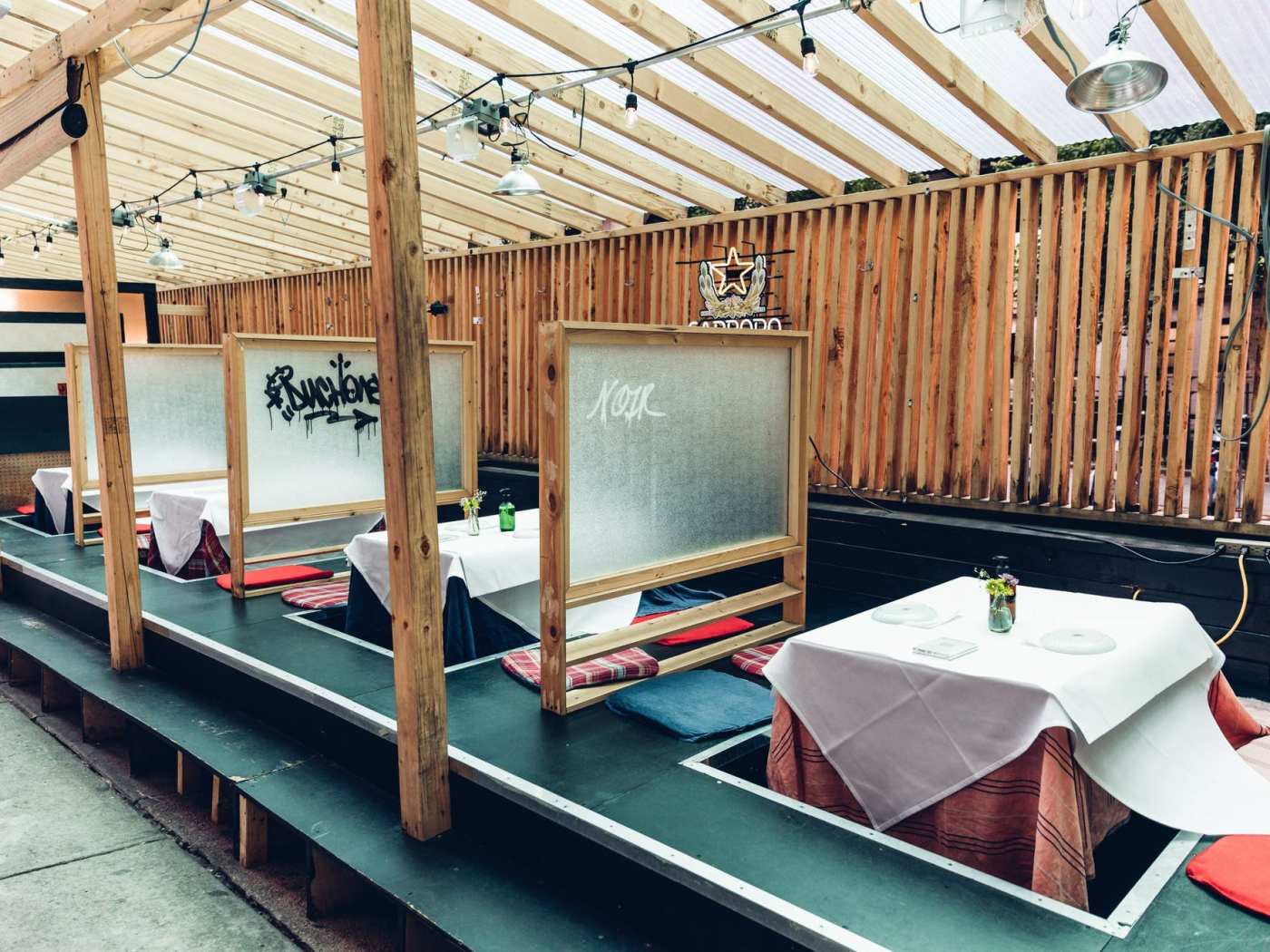 "What sets Dr. Clark’s sidewalk setup apart from some of its neighbors are the low, wooden kotatsu tables, which have a place for you to tuck your feet under the table. That, and the disco ball twirling nearby." - hannah albertine, nikko duren, carlo mantuano