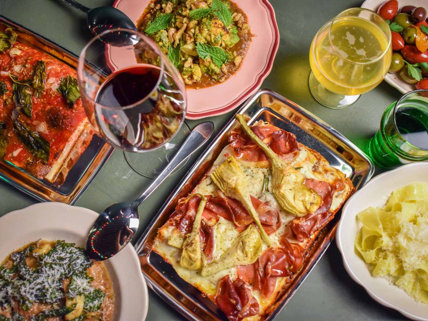 We went with a couple of friends and got there early, as we knew they were very popular. They have a fast-casual format where you order at the counter and they bring the food out to you. We had time to peruse the menu while in line and got some wine recs from the gregarious owner who was on hand to welcome the diners. We were sat in the back patio, which was delightful. I gotta hand it to the Baby Gee people: I was a little apprehensive when the building first got painted that pistachio green, but I'm happy to report that there was a method to the madness, and the ambience is quirky, but still pulled together.