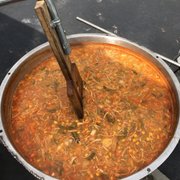 We were warned that there was a wait for the food. We weren't given an estimate, and looking around the restaurant, not filled to capacity, we agreed to stay. We were hoping it would give us time to talk, though the volume of the room made it difficult to hear without leaning in and speaking up. Which was fine with me, as my butt was going numb on the wooden bench we were seated in. Our food arrived an hour later. Not being privy to circumstances, we assumed that possibly it was a one man show back there, and having drained my plastic water cup long ago (adorned with a lemon, a cute touch) I took a bragging rights picture before digging in.