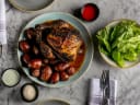 Pork & Polenta: Slow-cooked pork neck steak, marinated with ELLC Batch №2 gin botanicals, polenta purée, pickled shallots ELLC gin jus (£13)
