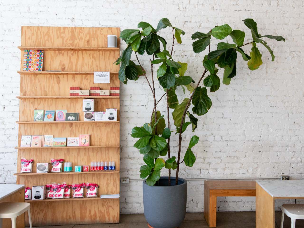 Airy cafe for coffee, matcha, pastries; minimalist, industrial-chic