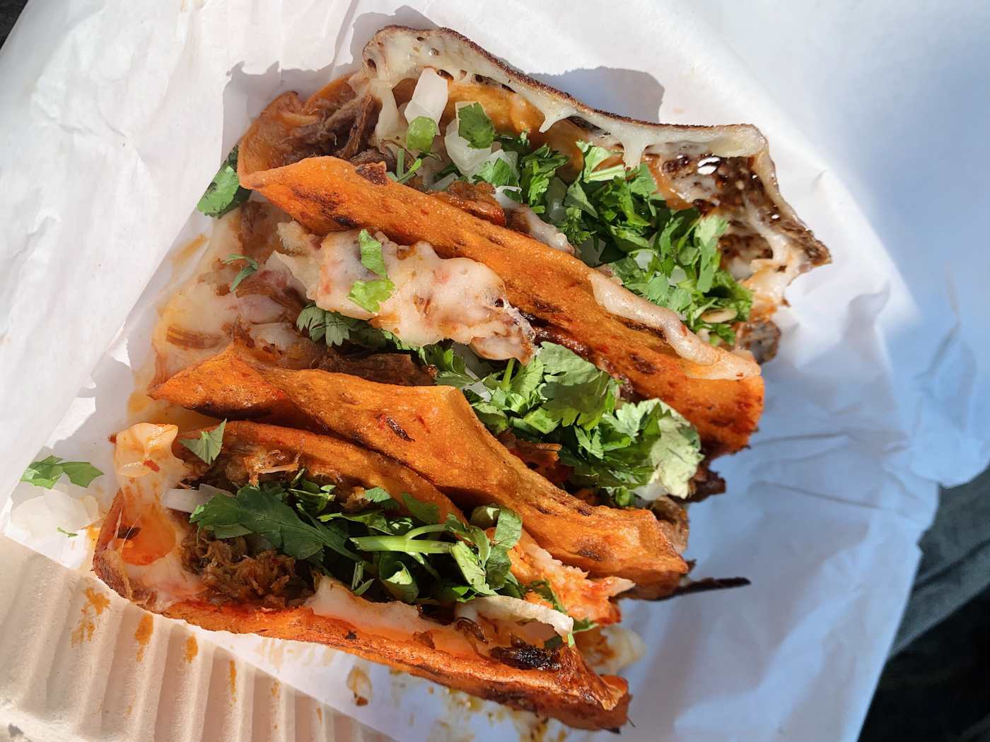 "These are the best quesabirria tacos in the East Bay, full stop. The business started as a front-yard pop-up in 2019, and the tacos became an instant Instagram sensation, which helped the owners open their own brick-and-mortar location less than a year later. After you take your first bite, it’s immediately apparent why this has become one of the most popular taco joints in the Bay: juicy beef birria layered between gooey mozzarella, wrapped in a crisp “red” corn tortilla — which is made impossibly more delicious when dipped into their comforting consommé." - Lena Park, Dianne de Guzman