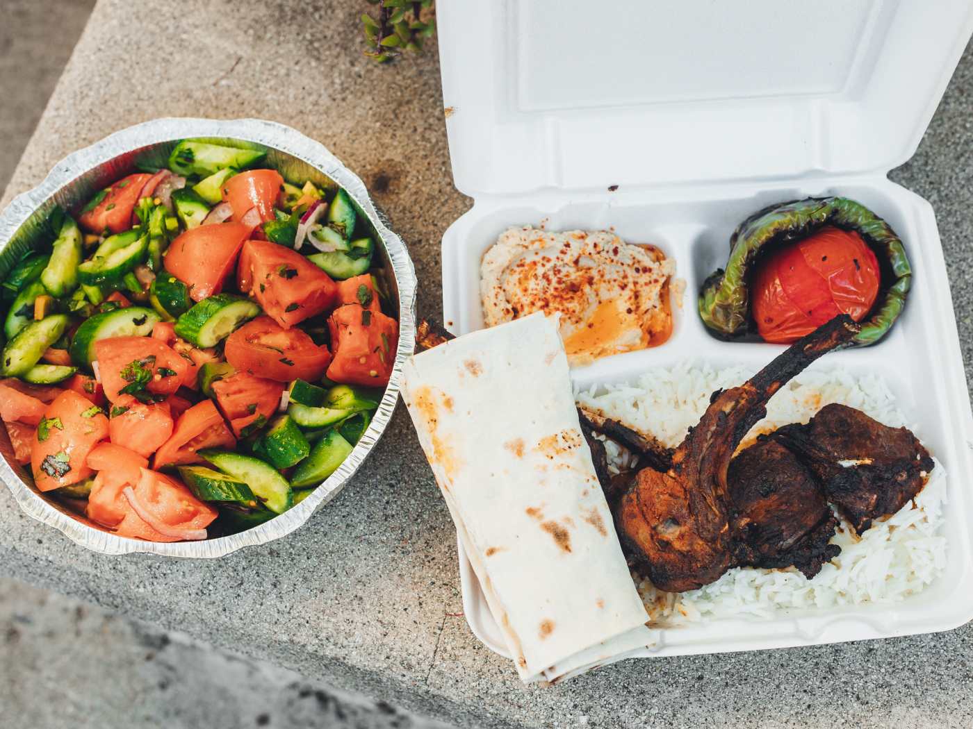 I had sultani - a chicken kabob and luleh chicken, my wife had beef luleh. The meat came with a roasted tomato and a roasted long green pepper, plus rice for her and French fries for me. She finished her dinner, I did not.