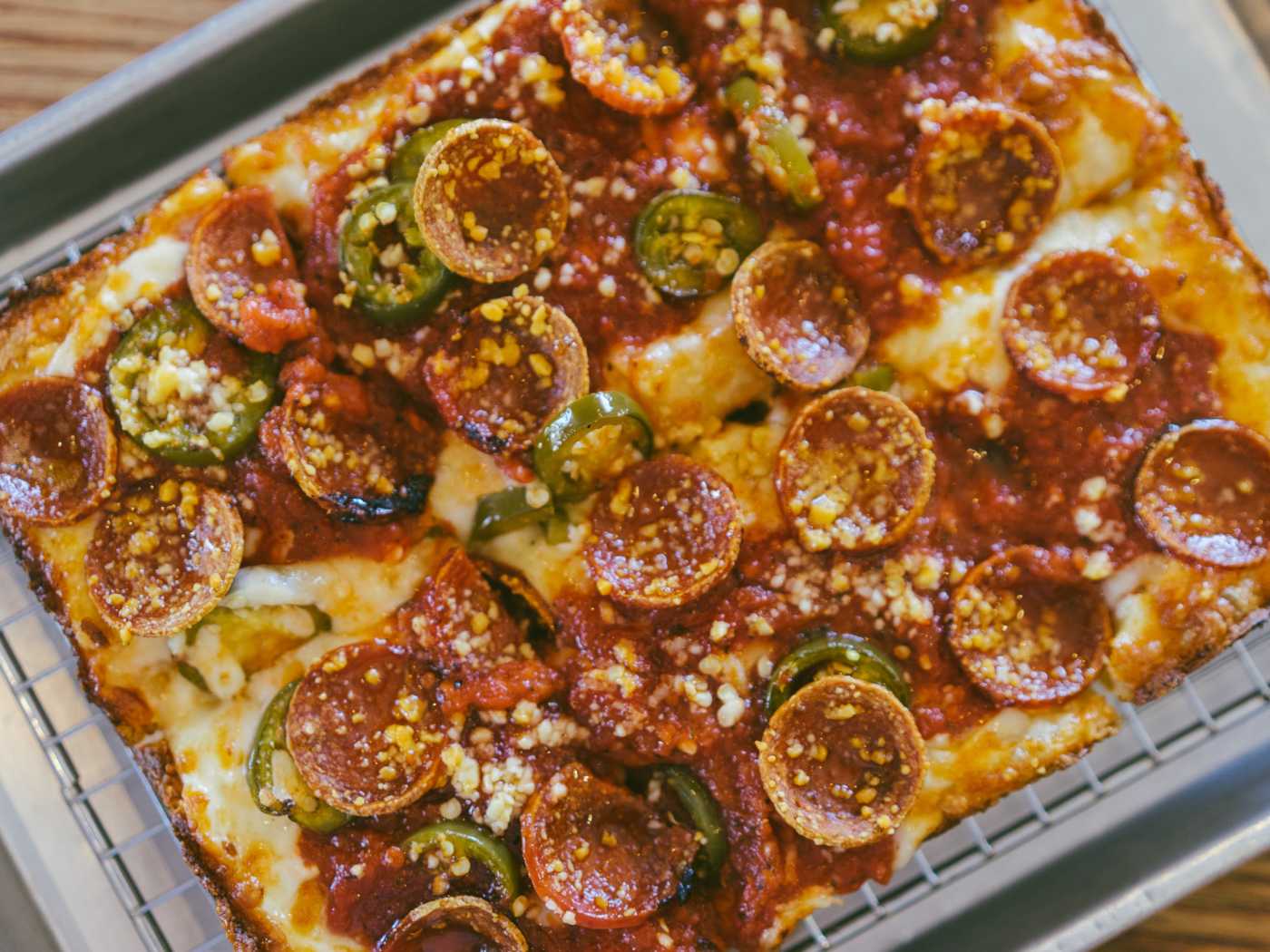 "We always leave Emmy Squared with mixed feelings. Not because we’ve ever had a bad meal here (quite the opposite), but because we tend to eat so much pizza that we’re incapable of doing much else for the rest of the night. This is all just another way to say that Emmy Squared serves some of our favorite pizza in the city. The Detroit-style pies have a buttery crust that’s covered in melted, slightly-burnt cheese, then topped with things like oily pepperoni and spicy chilies. We also love the burger here, and while it’s $25 on its own, it’s never a mistake to split that and some pizzas with a group." - bryan kim, matt tervooren