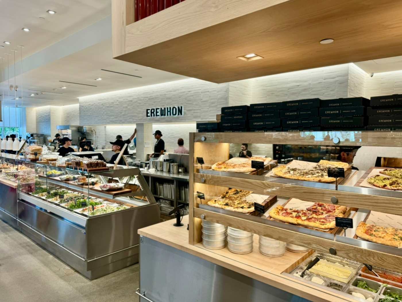 "It was only a matter of time before Erewhon hit LA’s sprawling tennis mom suburb, and luckily, the wait was worth it—this place is a beauty. It has all the trappings of an elite Erewhon location (easy parking, wrap-around patio, dads in competitive cycling gear dropping $85 on supplements), but what sets this place apart is the building itself. Originally a luxury department store built in the 1940s, you’ll find big, airy windows, cathedral-height ceilings, and a giant, dramatic square light fixture hanging over the grab-and-go section for some reason. Plus, in a move that can only be interpreted as a flex on other inferior Erewhons, there is both a pizza oven and a coconut soft serve machine." - brant cox, nikko duren, sylvio martins