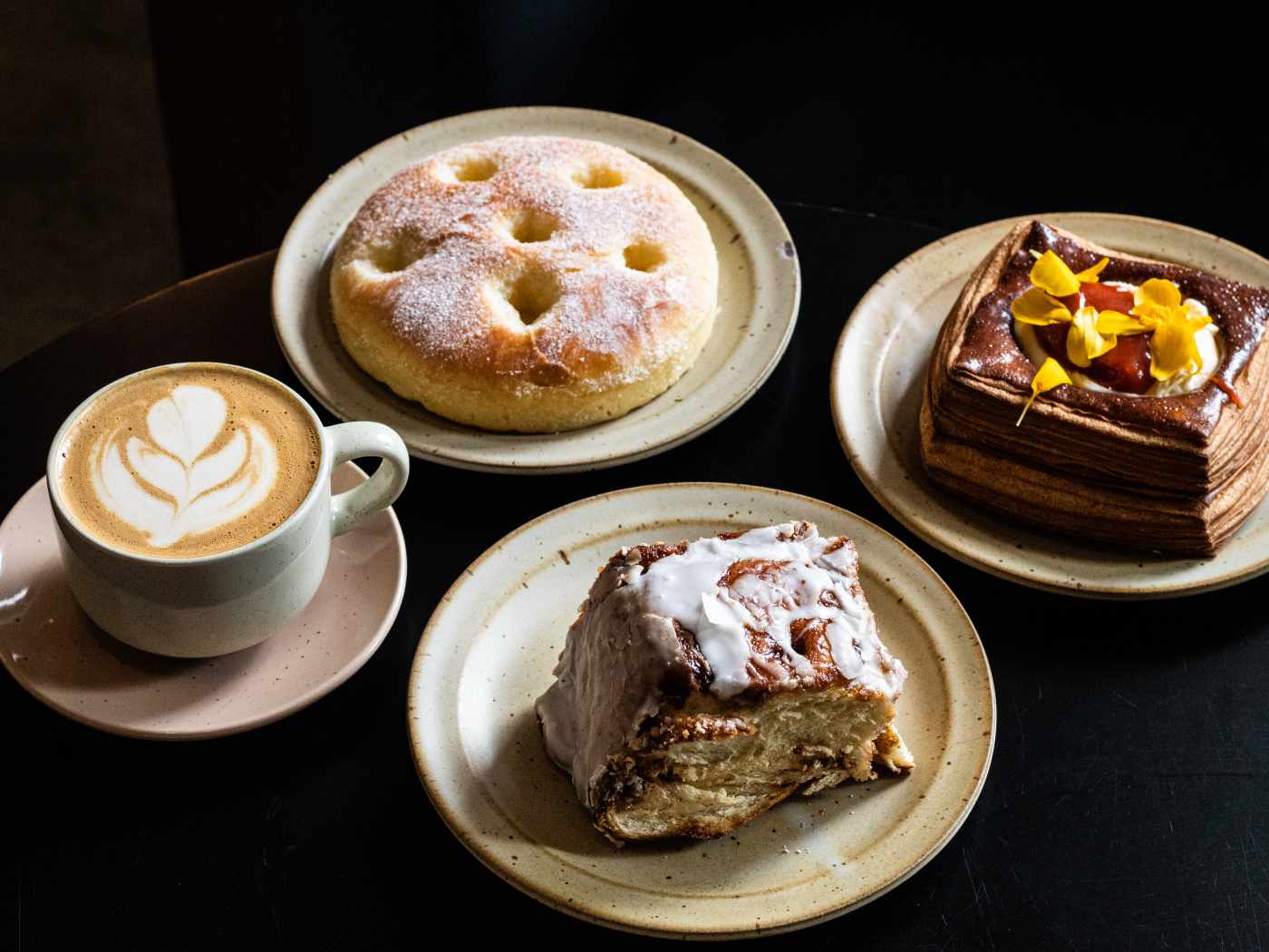 Facade has great potential, yet fails to get there. We went today and ordered an iced latte, corn milk with a shot of espresso, a cinnamon bun, the spicy onion toast, and the facade morning sandwich. The total with tip was $72.