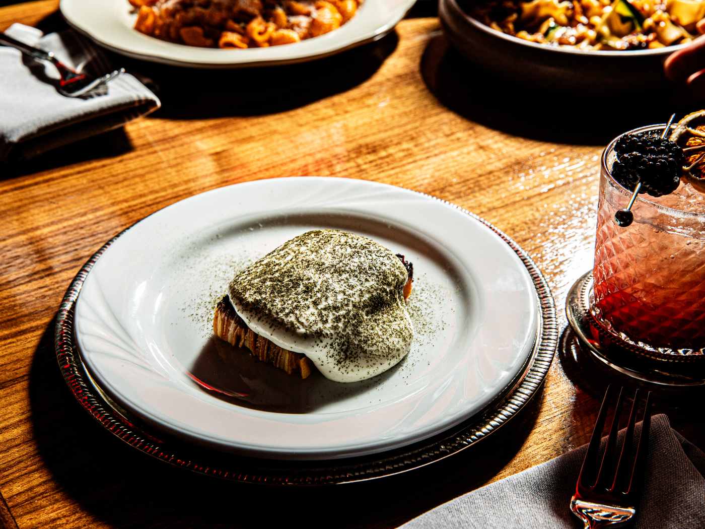 "If the reason you were headed to Locust was for the fun that comes with the meal, Fancypants will sub in nicely. Where Locust gives you comic book-like instructions to eat a beef tartare handroll, Fancypants sends you an intermezzo cone with coconut parsnip foam sticking out of a Hot Wheels-esque ice cream truck. The red walls, bold cocktails, and option to share a 32-ounce tomahawk steak are quite different than the seafood-heavy slate at Locust, but eating lasagna noodles made out of turnip shavings has a similar shock and awe factor." - ann walczak
