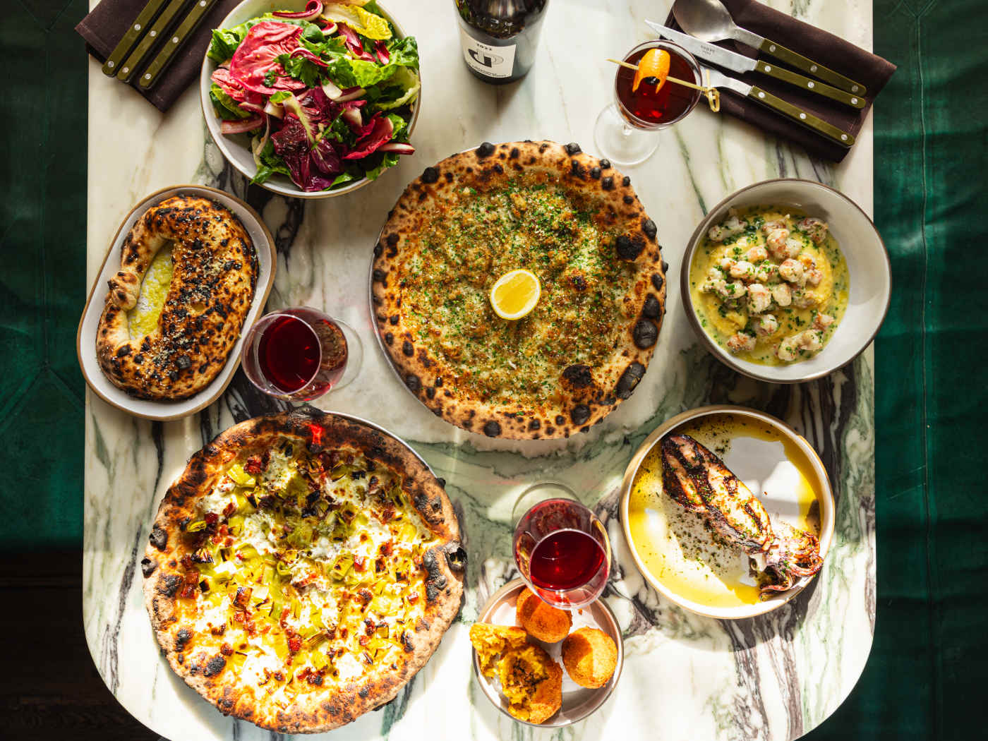 "A long wooden table, with nothing but a giant jar of Castelvetrano olives and a couple of cake stands, sits in the middle of the dining room at F&F Restaurant. In a world of tiny two-tops and expensive rents, this might seem like wasted space—something you'd expect at a flashy spot like Carbone. Here, it's just a simple spot to rest your eyes and contemplate the burnt cheesecake. This is Carroll Gardens, not the West Village. At F&F, the tables are well spaced out, the music is neither too loud nor too quiet, and the wine flows at a relaxed pace. photo credit: Kate Previte photo credit: Kate Previte photo credit: Kate Previte Pause Unmute The two Franks behind adjacent Frankie’s (457) first used this well-like dining room for their steaks-and-spaetzle restaurant Prime Meats, then their wine bar Franks. With F&F, they've cracked the code. As an elegant but laid-back place to eat personal pies by candlelight, this is the most useful version of this corner spot so far. Thanks to a menu that leans heavily on pizza—including some hits from nearby F&F Pizzeria—eating here never feels too stuffy. The bubbly-crusted personal pies may come piled with maitake, or melted leeks and glistening fried guanciale—but each one leaves a dusting of pizza char across your paper-covered table. photo credit: Kate Previte photo credit: Kate Previte photo credit: Kate Previte Pause Unmute Order a few pizzas, but don't stop there. There's also a calzone slick with olive oil and filled with wild boar, and braised beef with gnocchi the size of jumbo marshmallows, which well-mannered kids spear up between iPad games. The shrimp scampi isn't the kind you'd find clinging to angel hair at a country club. It has a velvety sauce that would be too lemony if it weren’t so buttery, and too buttery if it weren’t so lemony, and as a result, is perfect. Finally, there's that cheesecake, which takes a trip to the pizza oven to tan to a dark, caramel brown before hitting the center table. Always share a slice—whether you're dining with your favorite couple, or family members who always ask for the music be turned down just a little. Food Rundown Arancini The arancini are a nice place to start. They’re filled with veal bolognese, and the exterior is thin and crisp, like the top layer of creme brulee. photo credit: Kate Previte Big Green Salad You’re going to eat lots of cheese, lots of dough, and possibly lots of meat here, and so you’ll need a salad too. As promised, it’s a big pile of tender lettuces and pale pink radicchio with a tart dressing that balances out all the meat and cheese. photo credit: Kate Previte Calzone Stuffed With Wild Boar And Ricotta The pizza dough here is excellent, and ordering a calzone means you get to eat as much of it as possible. It’s covered in black bubbles of char and oozing with ricotta and shreds of wild boar. You should never have to choose between this and a pizza. Get both. photo credit: Kate Previte Clam Pie The clam pie is a fan-favorite at their slice shop, and for good reason—it tastes like under-the-sea garlic bread. It’s more butter than seafood, but always worth an order, even if it’s also available down the block. photo credit: Kate Previte Coppa Marscapone & Grilled Cipollini Pie A coppa and cipollini onion pizza with a heavy drizzle of orange blossom honey goes a little too far into hawaiian pizza territory for us, but we respect the innovation. Guanciale & Leek Pie If you love a pizza with onion or garlic, this is the white pie for you. Here, the allium of choice is leek, and the chunks of guanciale provide some nice pops of salt. photo credit: Kate Previte Scampi With Polenta We’ve never met a shrimp we didn’t like at F&F. Sometimes over pasta, sometimes over polenta, the tender knobs of shrimp are not to be missed. They achieve a perfect balance of butter and lemon. photo credit: Kate Previte Brasato Of Beef With Gnocchi The Franks know how to slow-cook meat. Here, fall-apart braised beef is surrounded by a few marshmallow-sized gnocchi with a mochi-like chew. If any version of this is available, order it." - Willa Moore