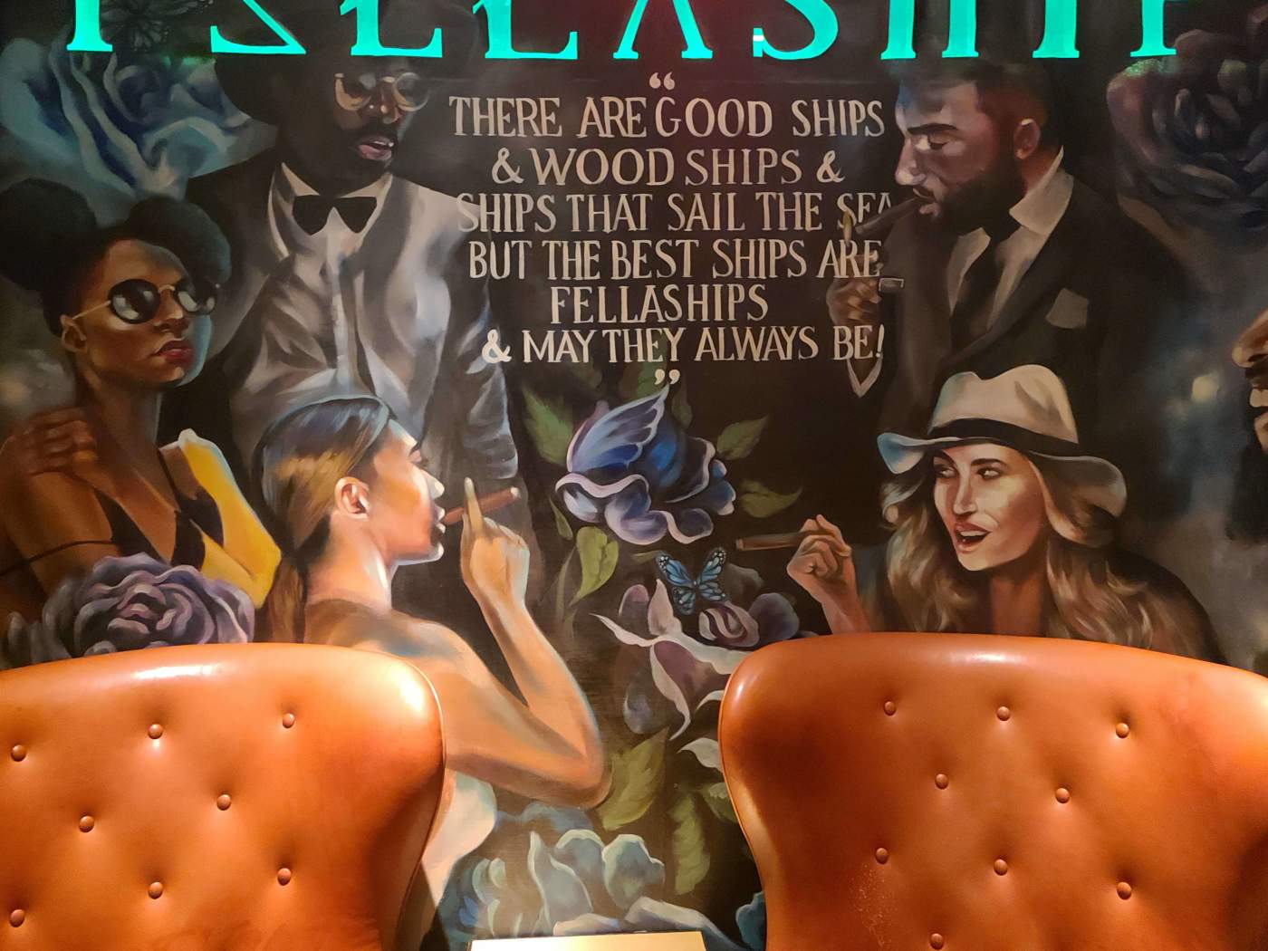 "There's a lot going on at Castleberry Hill's Fellaship. You'll notice a stylish bar, a cigar room, a hotel-inspired area with a book wall, and a members-only club upstairs." - jacinta howard, juli horsford