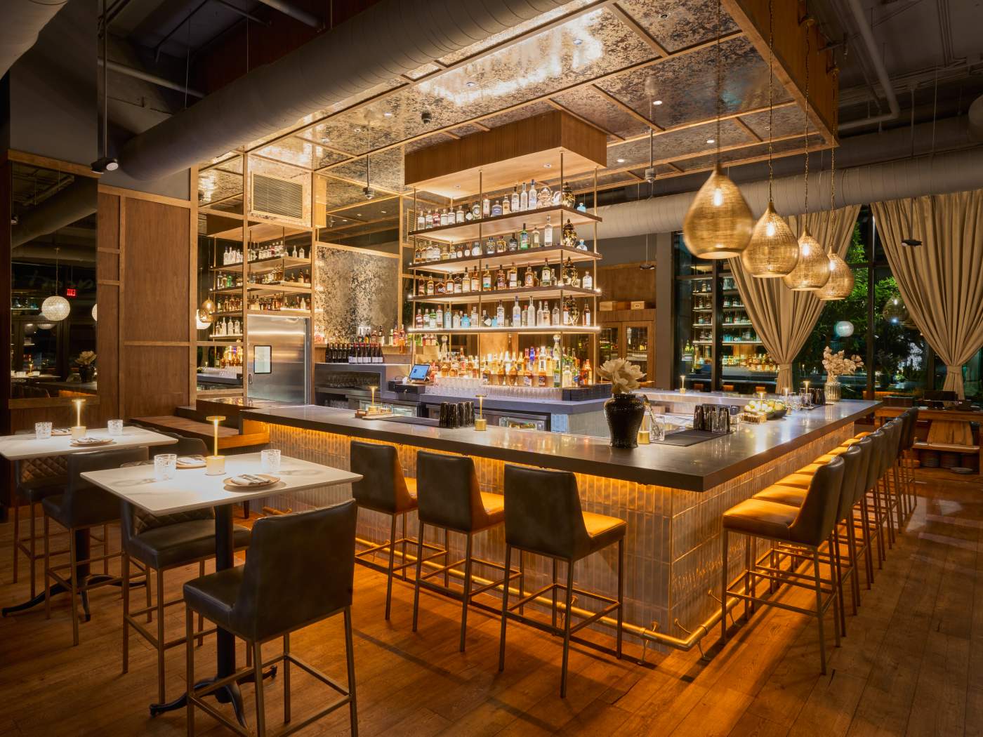 "Fitoor has the look of a place fit for an over-the-top banquet, but works well for walk-in dinner and drinks, too. Originally from San Jose, this upscale Indian restaurant in Santa Monica is decorated with gold accents, glowing globe lights, and floor-to-ceiling drapes—and, apparently, the occasional fire dancer on weekends. The menu is a broad mix of traditional curries like tender lamb shank rogan josh scooped up with naan, snacky street foods, and creative small plates like sweet chili broccoli (these tend to be our favorites). The bar is the sparkly centerpiece of the restaurant though, so it’s worth a stop for just a nightcap—we love the Pluto, a dessert-like gin cocktail with white chocolate and lemon." - brant cox, arden shore, sylvio martins, cathy park