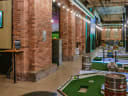 For the place itself, it blends in well with the rest of the area. The door is next to this pizzaria, which is so cute! I'd watch your step as you enter because it's underground! I mean, what do you expect. It's pioneer square, iykyk. As you walk in, it's loud. I mean as a new adult trying to navigate back into society after restrictions and limitations, I was a little overstimulated. We were not greeted with anyone in the front for ID checks. But they did check my ID for drinks and reservation (for those thinking you can get in like that forreal). You have to go down the first set of stairs to an even lowered area where the mini golf is. I tried checking in 20 minutes before my scheduled time, but there was a waitlist of people who could go if another party didn't show up. We went up to the main floor once you enter. We got a couple drinks. They're 1/2 off your first drink, you gotta download the app though. It was enough time to drink my cider and drink my cousin's cider to have a happy fun time.