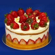 We threw a 75th birthday celebration in Gulfport for my mom, and rather than going with a grocery cake, I searched Yelp for a local bakery and landed on Fleur de Lis. Other reviewers raved about these cakes and the pictures made my mouth water. I checked their website 2 weeks prior to the party, but their online ordering system was down so I called to get options and prices. I went with the 12" Strawberry Bavarian Cheesecake as mom loves strawberries and cheesecake.