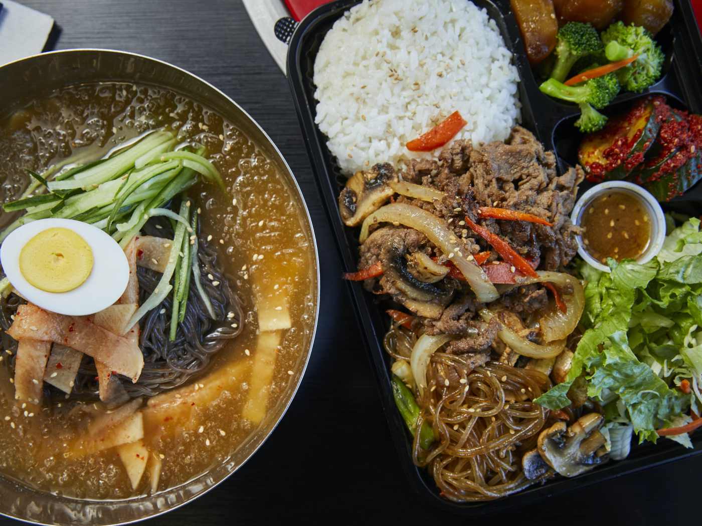 Spicy pork ribs, kimchi fried rice, mul-naengmyeon