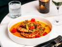 "Opening Saturday, April 19 near the White House at 1025 Vermont Avenue NW, this sizable supper club offers an excellent espresso martini, massive mains, and a caviar-and-nuggets novelty that superstar singer Rihanna helped popularize last year when she DIY’d it and posted it on Instagram. Award-winning chef Sammy Davis, known for his Southern soul food at regional chain Milk & Honey, expands his global repertoire here with a Mediterranean-meets-Latin menu: starters include deep-fried hummus that features refried beans for an airy, mousse-like texture; a red snapper filet with black rice and tamarind-curry sauce; salmon “lollipops” — a classic Davis calling card — slathered with tzatziki; and Peruvian shrimp ceviche elegantly presented atop ice inside a glassy orb, with Himalayan sea salt tostadas serving as dining utensils. The centerpiece may be chicken nuggets topped with caviar — a high-meets-low-brow combo Rihanna put on the map — and here the pairing joins forces with creme fraiche and a show-stopping finish of 24-karat gold flakes ($60). (The chicken nugget–caviar combo has also been a smash-hit at NYC spots like Coqodaq, the fried-chicken temple from Simon Kim.) If that’s not indulgent enough, there’s a 1.5-pound tomahawk rib-eye served with truffle butter, chimichurri, and Tiger Sauce, plus an anchovy-topped Caesar that pairs with a whole Mediterranean branzino swimming in a tangy tomato sauce. The project is from D.C. nightlife vets Wayne Johnson and Tony Perry (behind Saint Yves and Abigail), teaming with East African–born entrepreneur Mele Melton, and the swanky look comes courtesy of Drummond Projects. Beverage director Hakim Hamid, formerly of L’Annexe, riffs on crowd-pleasing classics with creations like “Enough is Enough” — his side-eye to packs of Georgetown guests all ordering an espresso martini at last call — which swings a little sweet thanks to strawberry-macerated Casa del Sol tequila, almond, chipotle, espresso, vanilla, and chocolate bitters; other cocktails starting at $18 include the “Last Wordsmith” (blueberry-infused Uruapan rum, yellow Chartreuse, Maraschino liqueur, lemon) and “I’ll Take Four of ‘Em” (Champagne, Aperol, orange blossom, raspberry, soda). To drive the carefree tone home, the drink napkins read: “Enjoy your f**kin’ cocktail.” The room — an LED-lit ceiling like a constellation of stars with plush banquettes and swan-backed seats for about 70 patrons and a lengthy front patio coming to life in spring — promises roving violinists, dancers, DJs, and a vibe taking tips from hot spots in Mykonos, Dubai, and Saint-Tropez; hours are Tuesday–Sunday, 5 p.m. to 1 a.m." - Tierney Plumb