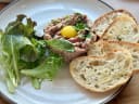 "A meal at Galinette is like catching up with that friend you see every few months. You’re never making consistent plans to see each other, but when you do it’s easy and comfortable. This Outer Sunset bistro channels nearby Ocean Beach. Sunshine floods in from the windows on every wall, while sandy families, surfers, and groups of friends pile into simple wooden chairs stationed around communal tables. Unrushed service means you can take your time digging into French comfort food like beef tartare and escargot, all while you’re still wearing a bathing suit under a cover-up. And if those long overdue conversations end up taking a few hours, you’re in luck. This spot stays open until 9:30pm, a rare find in this neighborhood, so you can linger after the sun goes down, run back out for a polar plunge, and return for a hot chocolate and bread pudding. Just like any friend though, a meal here isn’t perfect. There are some definite high notes: the tartare is one of the best renditions in the city and the juicy roasted chicken is doused in a dijon mustard cream that you’ll be licking off your fingers. And then some dishes remind you why you only see each other sporadically, like the dry jambon beurre, or steak frites with a hanger cut that’s tough enough to confuse with a dehydrated apple ring. You might say “We should do this more often,” but in your heart you’ll know it’s best just every once in a while. Food Rundown Beef Tartare As expected. An egg yolk topping with four slices of lightly oiled bread and a few leaves of romaine lettuce. It’s tangy, creamy, and everything a tartare should be. Order it. photo credit: Ricky Rodriguez Roasted Chicken This half—or whole—chicken should come with a splash zone warning. It’s served with a dijon mustard cream and green beans and is one of the best things on the menu. Bourride Despite almost every sea creature imaginable being in this bowl, this stew is bland. But, there aren’t many opportunities to try this southern French dish in San Francisco, so if you’re curious, temper your expectations and give it a shot. Hanger Steak Frites We ordered ours medium-rare, and it still came out chewy. But the crispy fries, reminiscent of a certain golden arches-themed fast food franchise, still make this dish worth ordering. Jambon Beurre Unfortunately, this baguette is tougher than a piece of gum that’s stuck to the bottom of a bench, and the ham is more parched than a bowl of milkless cereal. Skip with confidence." - Ricky Rodriguez