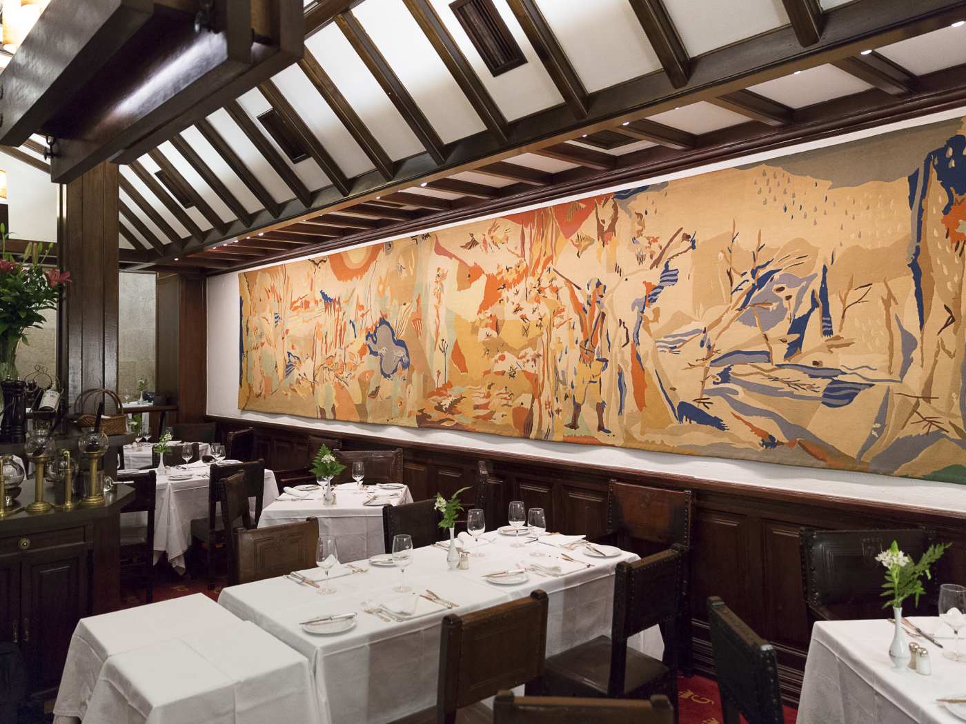 For seating, choose between the long bar in the entrance, or the two seatting dinning rooms, very warm in the winter days and nights with their comfortable manor house decoration, made of solid wood tables, large high back support chairs, impecable white linen, porcelains and silver cutlery.
