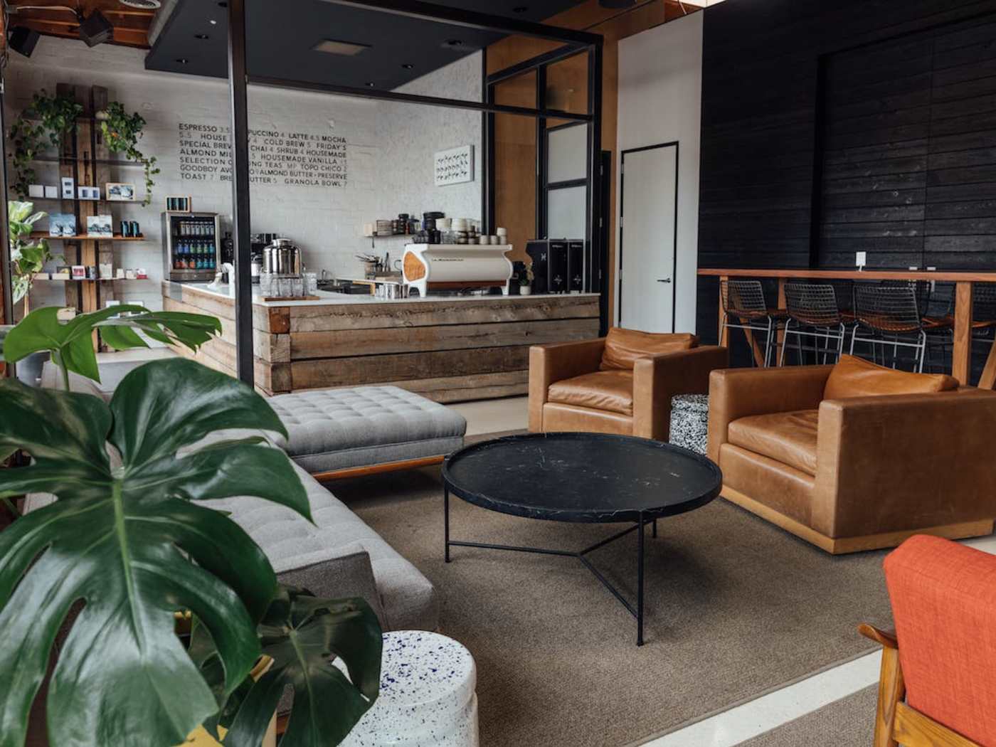 "Goodboy Bob in Santa Monica looks and feels like an extension of a tech start-up with its soft brown leather couches, sharp geometric chairs, and overall industrial feel. This means you don't have to worry about standing out with your laptop because nearly everyone here is working in the café-coworking space hybrid. All of the coffee is roasted in-house, plus they serve whole wheat flatbreads, salads, and an extensive Happy Hour drinks menu." - brant cox, sylvio martins, cathy park