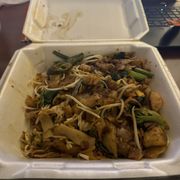 Mine: Pan Fried Noodles w/ Beef (egg noodles sautéed in house brew soy sauce with cabbage, onion & carrots - Twisted Thai