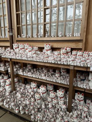 The train ride out was absolutely worth it — smooth, easy, and a nice escape from the busier parts of Tokyo. Once you arrive, the temple is peaceful, beautifully maintained, and full of small details you notice only when you slow down. And of course, the maneki-neko figurines are a delight to see in person — shelves of lucky cats clustered together, quietly watching over everything.