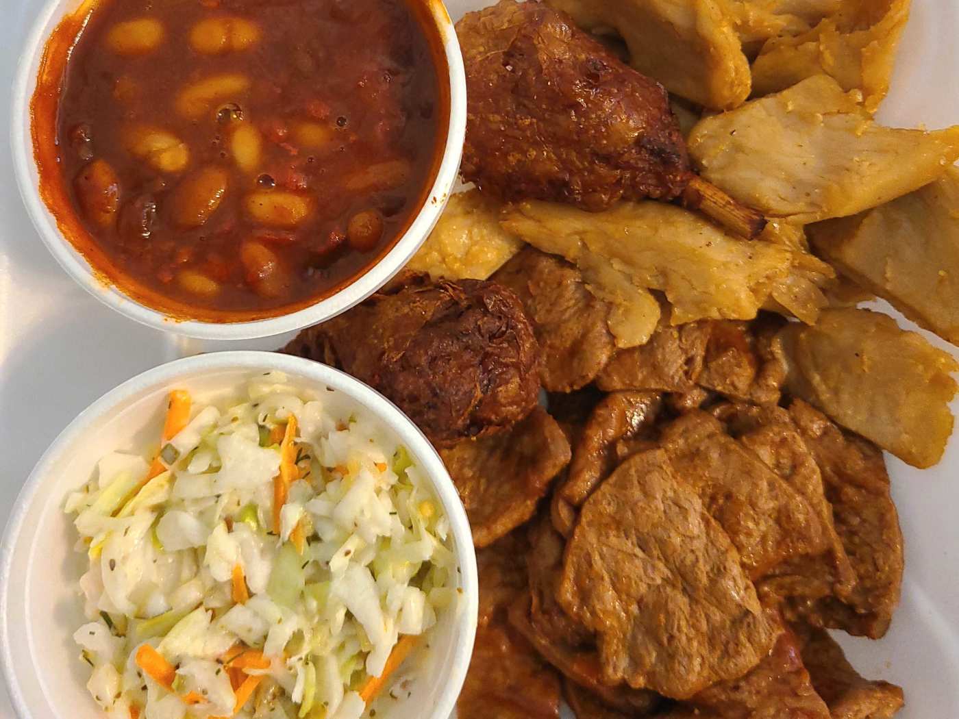 I ordered The Groveway, which was a pulled jackfruit sandwich topped with VBQ mustard, green onions, and chow chow, on a toasted bun. It came with a side of Zapps chips. I also ordered a banana pudding cookie! Friends ordered the Nashville Hot Chickn, macaroni, jerk wings and baked beans.