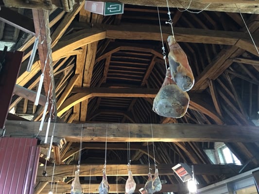 Groot Vleeshuis is a historic building which used to be the meat market long time ago. Now it's been converted into a restaurant, and the cool part about this place (other than the history) is that they have real Flanders ham hanging and drying from the ceiling! You don't have to be eating there to walk through the restaurant to see the ham! After going on a free walking tour, I was starving, so I came to eat lunch here. There are tables in an inside area that's inside of the building (sounds confusing, but when you see it you'll know what i'm talking about), but sitting in the area where the hams are hanging is a lot more fun. You just grab any table and a server will come to you. It's a hopping place for brunch/lunch - they have salads and toast and omelettes, and of course lots of beer options. I wanted to try something local and so I ordered the waterzooi, which is this cream/egg based stew with chicken and potatoes and other veggies. The dish originated in Gent. And since I was at the old Butcher's Hall, I wanted to try some ham. They had a meat tasting dish that came with four different meats. The meat sampler came with Superano ham, Ganda ham, Breydelham, and Gentse kop. My favorites were the Superano and the Ganda - they tasted like prosciutto. The Breydelham tasted like regular ham. The kop was my least favorite - it's basically a pork product made of parts of the pig like the head. I guess it's kind of like spam, but not as tasty. The sampler came with some kind of mustard for dipping the meat in! The waterzooi was tasty and hearty and it was huge!!! It had generous chunks of chicken and yummy potatoes. I like the light creamy flavor. I couldn't finish it because it was too much food.