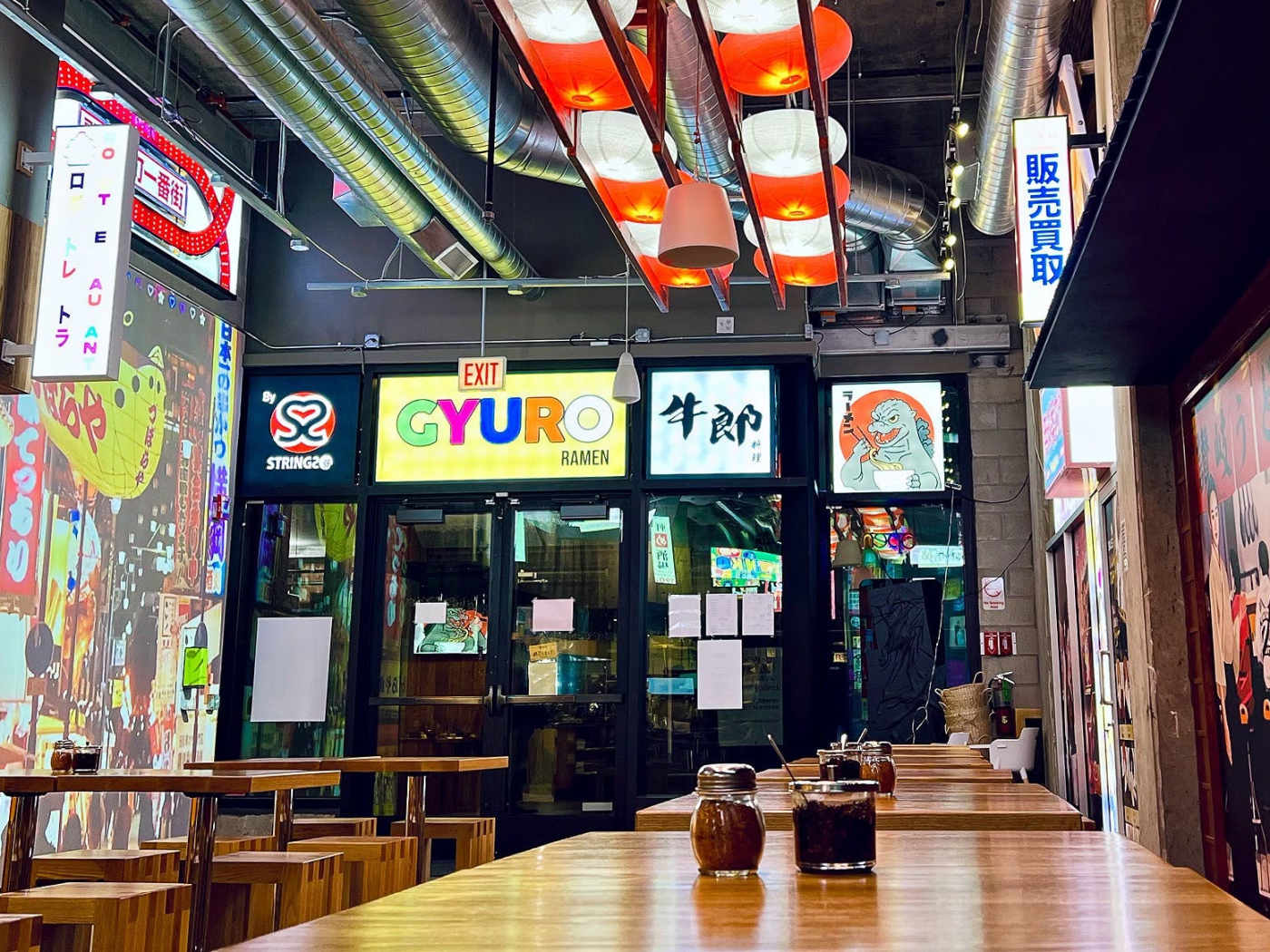 The decor inside is super cute, full of neon lights and bright cute characters like you'd find in Japan.