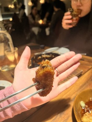 "Park Slope has a lot going for it. It has gorgeous brownstones on quiet tree-lined streets, easy access to Prospect Park, and more playgrounds than an eight-year-old kid on a sugar high could even dream of. It also has a lot of great restaurants, but many of them feel about as exciting as the couple downstairs who split one glass of merlot every night while stressing about alternate side parking. There aren’t a ton of loud, dark dinner spots ideal for a night out with friends, or a double date with your funemployed roommate. In other words, there aren’t a lot of restaurants like Haenyeo. Haenyeo serves Korean food in an attractive corner space on 5th Avenue (across the street from Al Di La), and it doesn’t take reservations. This might sound like exactly the type of high-stress situation your doctor told you to avoid, but it actually helps make this place feel a little more fun than other restaurants in the area. People drink cocktails at the bar up front while they wait, and then once they’re seated in the busy dining room, they hang out for a while, talking loudly and pouring each other shots of inexpensive soju. And on the whole, the food here is worth waiting for. The menu ranges from scallion pancakes to bibimbap to barbecue meats that come out on sizzling platters, but you should focus most of your attention on the small plates. The grilled oysters each come in a pool of delicious seaweed butter, and the sweet, spicy fried chicken wings are so meaty you’ll briefly wonder if there’s a HIIT workout for chickens. And then there’s the rice cake fundido, served in a spicy sauce topped with jalapenos, chorizo, and melted Oaxaca cheese. This dish is part Korean tteok-bokki and part Mexican queso fundido, and it’s the best thing here. Other things, especially some of the large plates, are disappointing. The bibimbap and glass noodles don’t have much in terms of toppings, so they end up tasting bland, and the fried chicken is mostly just spongey batter. The meat in the short rib barbecue is overly fatty and chewy - although you probably won’t even notice that once you bite into one of the peppers that mask everything else on the plate. (We prefer the pork barbecue as an entree.) But assuming you order the rice cake fundido and some cocktails, like the “Seoul Train” with whiskey and absinthe, you’ll have a really enjoyable time here. In a part of Brooklyn full of kids’ menus and designated stroller parking, Haenyeo stands out as a place you can go when you want to use curse words at the dinner table without having to spell them out. Even if that’s not something you ever have to deal with, you’ll just enjoy the fact that this is a casual place to hang out and eat some good food. That’s great to have in any neighborhood. RESERVE A TABLE Food Rundown Grilled Baguette There are a lot of sauces, soups, and stews here that you’ll want to sop up. Instead of getting this bread, which is garlicky and lathered in butter, just get a side of white rice. Scallion Pancake We prefer the scallion pancake with a bunch of zucchini to the one with mung bean and kimchi, but there are plenty of other small plates you should get here instead. Rice Cake Fundido The only thing you need to figure out is how many orders of this you’re going to get. The tender rice cakes come in a pool of spicy sauce that’s similar to tteok-bokki, but then the whole thing is topped with jalapenos, melted cheese, and chorizo. It’s spicy, rich, smoky, and generally great. Get a side of rice to eat with the extra sauce. Crispy Chicken Wings These wings throw their little chicken hats into the ring with the ones from Bar Goto, Mission Chinese, and Samesa as far as great non-buffalo-style-wings in the city go. They’re massive and come glazed in a sweet sauce. If some people in your group like their wings spicy, there are little slices of pepper that you can add on top. Glass Noodles These glass noodles come with some mushrooms and an egg, but there’s not much to them. Skip. Grilled Oysters As with the rice cakes, you’re going to want more than one order of these. Pour the melted seaweed butter on the brioche that’s served on the side, then top that with the smoky grilled oysters. Fried Scallops The scallops are fried and covered in corn tartare sauce, and while it all tastes pretty good, you don’t really get any flavor from the scallops themselves. You won’t be upset having these on your table, but they shouldn’t take the place of the rice cakes, oysters, or chicken wings. Cod Fillets Same deal as above. You’ll probably finish the whole plate of these egg-battered cod fillets, but you won’t ever think about them again. Braised Mackerel As long as you like really strong-tasting fish, then this big slab of mackerel in sweet sauce needs to be on your table. Jalapeno Fried Chicken You don’t need to get the fried chicken covered with housemade spicy sauce. Those are words we never thought we’d say, but the meat has a ton of batter, which makes it spongey and pretty bland. Beef & Clam Miso Stew This is somewhere between soup and stew as far as heaviness, and the broth, especially poured over some rice, is very enjoyable. But there isn’t much in the way of beef or clams, so it’s up to you if you want to pay $16 for really good broth. Short Rib Barbecue Even if you’re with a big group, you don’t need to order this. The meat is very fatty and doesn’t have much flavor, the ssam is extremely salty, and the peppers overwhelm all the rest of it. Save the $34 (this is the most expensive thing on the menu), and get a few more small plates or the pork barbecue instead. Pork Barbecue We’re not going to weigh in on pork versus beef barbecue in general. Wars have been fought over less. But we’ll just say that if you’re going to order one of these two things at Haenyeo, it should be the pork. It’s the best entree here. Bibimbap This is a huge portion of rice, plus some vegetabl