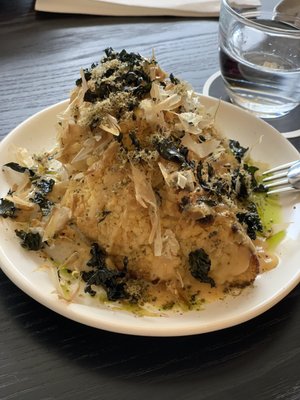 We read about this place on Heart of the City Auckland and decided to come try it out after a rainy day hike at Rangitoto Island. We (my husband and I) ordered 5 dishes: sashimi, tofu dumplings, potstickers, ramen to share, and kimchi pancake. The waitress was gonna advise against ordering this many dishes for just two people, but my will persisted. The sashimi consisted of 3 types of fish: salmon, tuna, and snapper. The fish was delicious, with flavors of koji sauce, wasabi, and xo sauce. Tofu dumplings were amazing, earthy taste with refreshing green onion twists on top. The potstickers had an amazing presentation, upside down and looking like a starfish sitting in spicy oil. They pan fried the dough to make it crispy and crunchy around the potsticker. My husband who doesn't usually eat potstickers said it's the best one he's ever had. Our 4th dish is the shared ramen cup, the cup is small but big in flavors: it had shrimp wonton, char shiu pork, and the noodles were thin and flavorful. The broth (chicken) is excellent. Our last dish is the grilled mung bean kimchi pancake, by now we were a bit full, but we still managed to savor the meaty dish and sweet mayo-bbq sauce. We go to a lot of Korean restaurants so we have tried various savory pancakes, this one didn't disappoint.