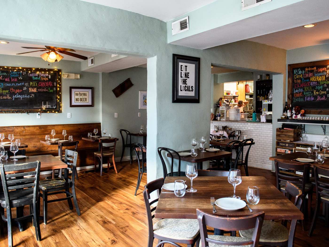 "Helm in Kensington is an American BYOB, and a majority of the people here are 100 dates in, still like each other, and talk about things like their mortgage or how to avoid another visit from the in-laws. Between the dim lighting and candles on the table, it does the job of a cozy space where you can split your favorite bottle and stare at the twinkling lights surrounding the chalkboard menu. The food here changes often, but the interesting small plates are easy to share—like rhubarb and soppressata wontons and chicken with a sunchoke confit." - candis mclean