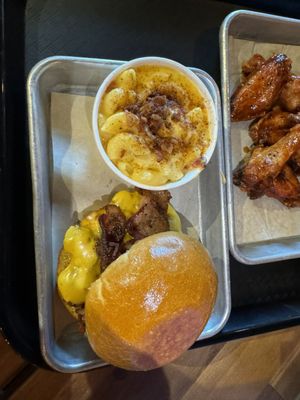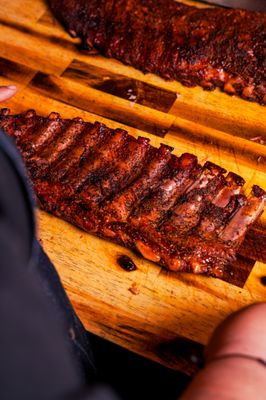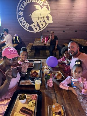 Dominican BBQ with brisket, pulled pork, ribs, and ube cornbread