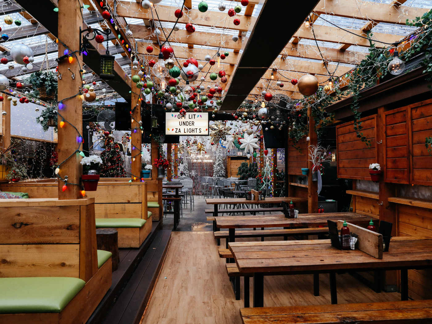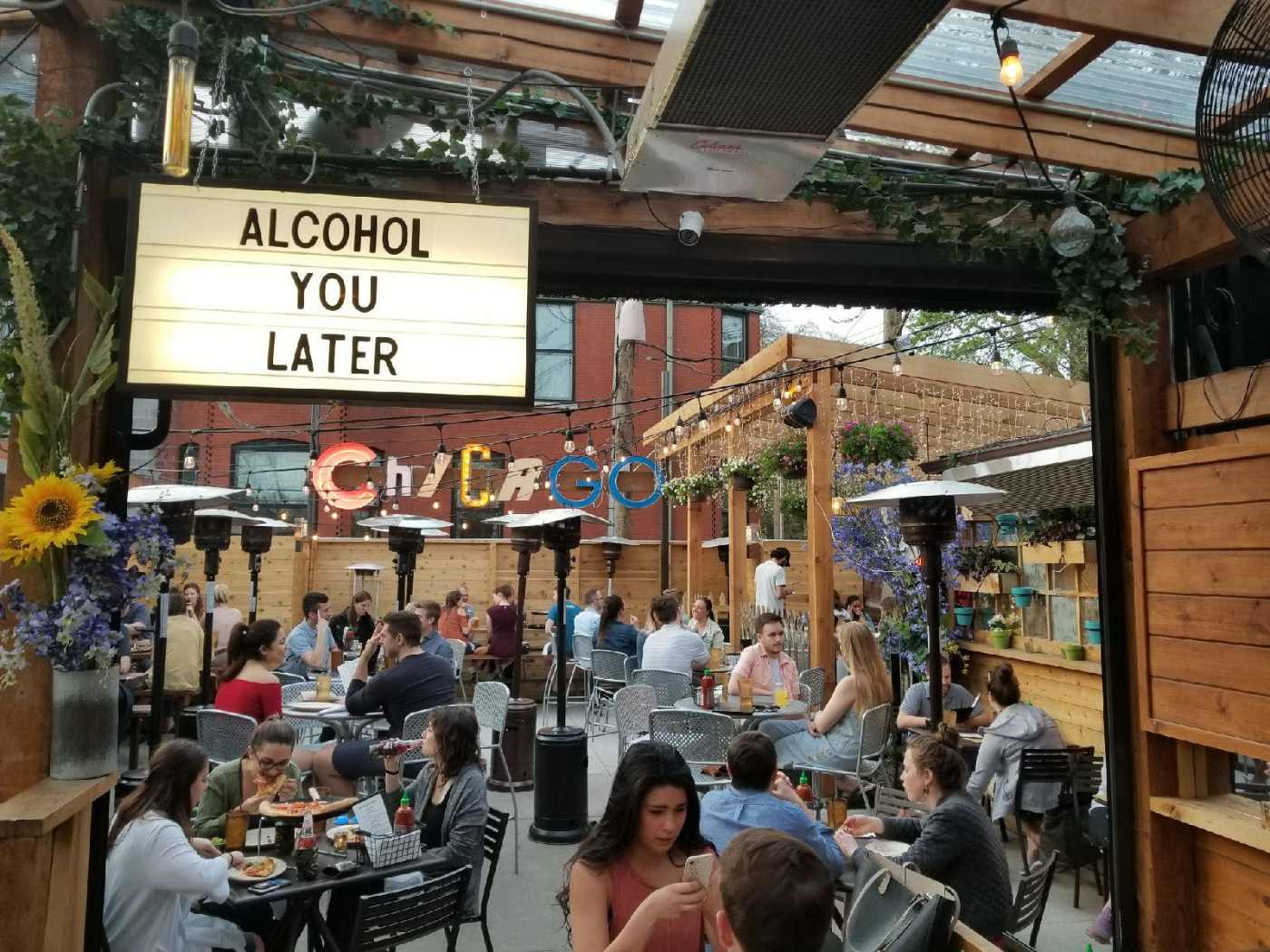 "This pizza place in Lincoln Park has also spent a lot of time curating its atmosphere, but in this case the atmosphere is more like “college apartment on a CW show.” There are big, comfortable couches with lots of space for groups, and light-up signs that remind you to “be awesome.” Homeslice also has a fantastic outdoor patio, and during the winter goes to extreme lengths to make sure that patio is still usable and comfortable (it’s covered in plastic and temperature controlled). So it feels a little bit like eating in a tent from Outbreak, but with pizza and adult-size swing sets." - adrian kane