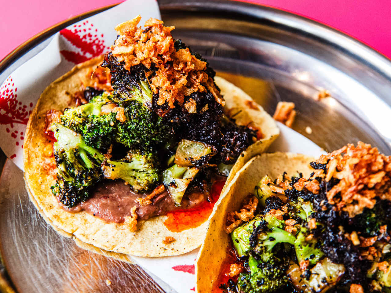 "Sat in front of a pink and yellow mural, with a creamy horchata in one hand and jalapeño relish slowly dripping down your wrist, it’s impossible to feel unhappy at Homies On Donkeys. The Leytonstone taqueria serves mood-boosting tacos like smoky chicken barbacoa topped with roasted tomato salsa. But our favourite is the broccoli taco: it’s charred and crispy, served on some of the best refried beans we’ve had, and drizzled with salsa macha." - jake missing, rianne shlebak, daisy meager, sinead cranna, heidi lauth beasley