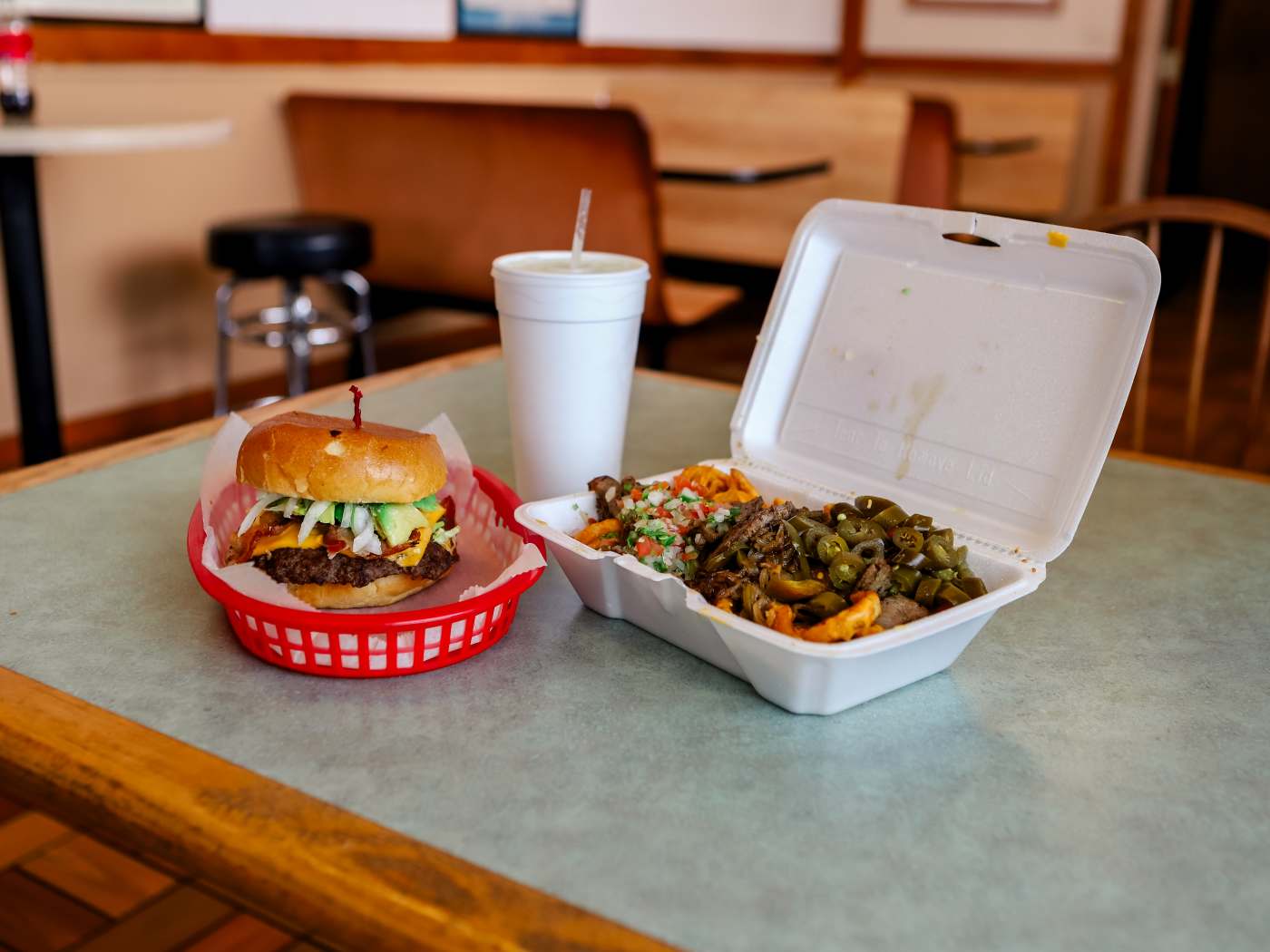 Loaded fries, burgers, breakfast burritos & sandwiches. Drive-thru.