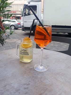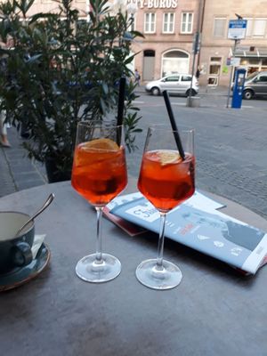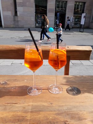 As far as food, I normally don't talk about drinks in my posts, but the cinnamon cherry lemonade was something so unique and so tasty that I have to tell my fellow Yelpers! And, here's the kicker, it came with ICE! I was sipping this deliciousness for a few minutes before I realized what was enhancing it's flavor...the ice. In 10 days, I have yet to see ice in one drink here in Germany (as it is most of Europe). So, when you finally get a drink filled with ice, you notice..and you enjoy.
