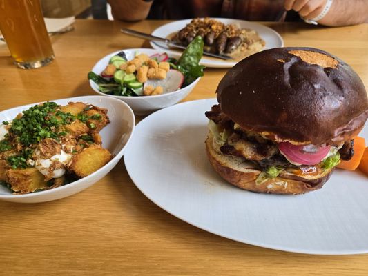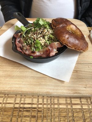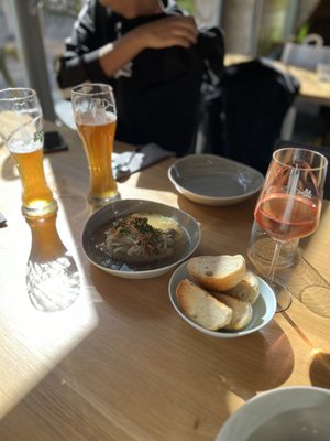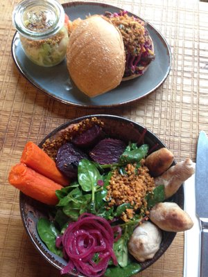 For our entrees, we ordered the pulled pork burger (which in the US, we'd just call a pulled pork sandwich. It is not a burger) and the grilled goat cheese from the vegetarian menu. The pulled pork was delicious and came over-flowing with meat. Like, you need a fork to clean up your plate. It also was accompanied by a small cravat of salad that was also good. The goat cheese was sprinkled with crispies and pomegranate seeds, which I scrapped off because they're not fun to chew, but made for a very nice presentation. It also come with a bowl of pickled sweet beets which were really tasty and naturally go with goat cheese.