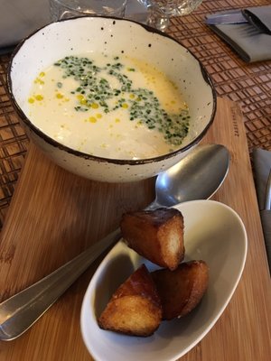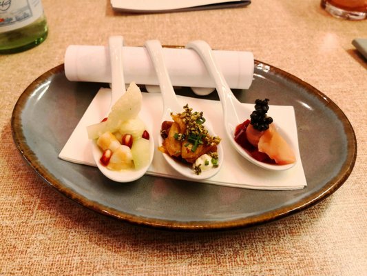 We also ordered the shrimp cocktail to start. It is a bit spicy, just enough to leave your mouth with a nice tingle. It was good. I was hoping the shrimp would be larger. They were just the size you'd get at the grocery store, but for almost 13 Euros, I was hoping for something larger. It was good- layered with a homemade tomato marinade of some sort with salad and some crispy crumbs or balls? It looked like cous-cous but was crispy. It also came with a small side of their homemade croutons, but these aren't crunchy; they are buttery, garlicy, soft cubes of lightly toasted bread. Very yummy!