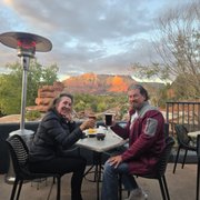 yummy food! we (family of 4) got a somewhat last-minute reservation, it was very busy the weekend we were in sedona. the restaurant is spacious with high ceilings that makes it seems very open and makes it less loud. there is seating outside with heaters (writing this in december), but we got a table inside and it was great!