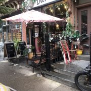 As i approached the building, I thought - what a fabulous idea! The dining room, though somewhat small (seats about 30), feels spacious because of the large windows, warm smiles and beautiful tulips on each table. For $10 or a donation of service if you have no cash, you are offered a 3 course meal (appetizer, entree, dessert AND bread, REAL butter, and a beverage)!