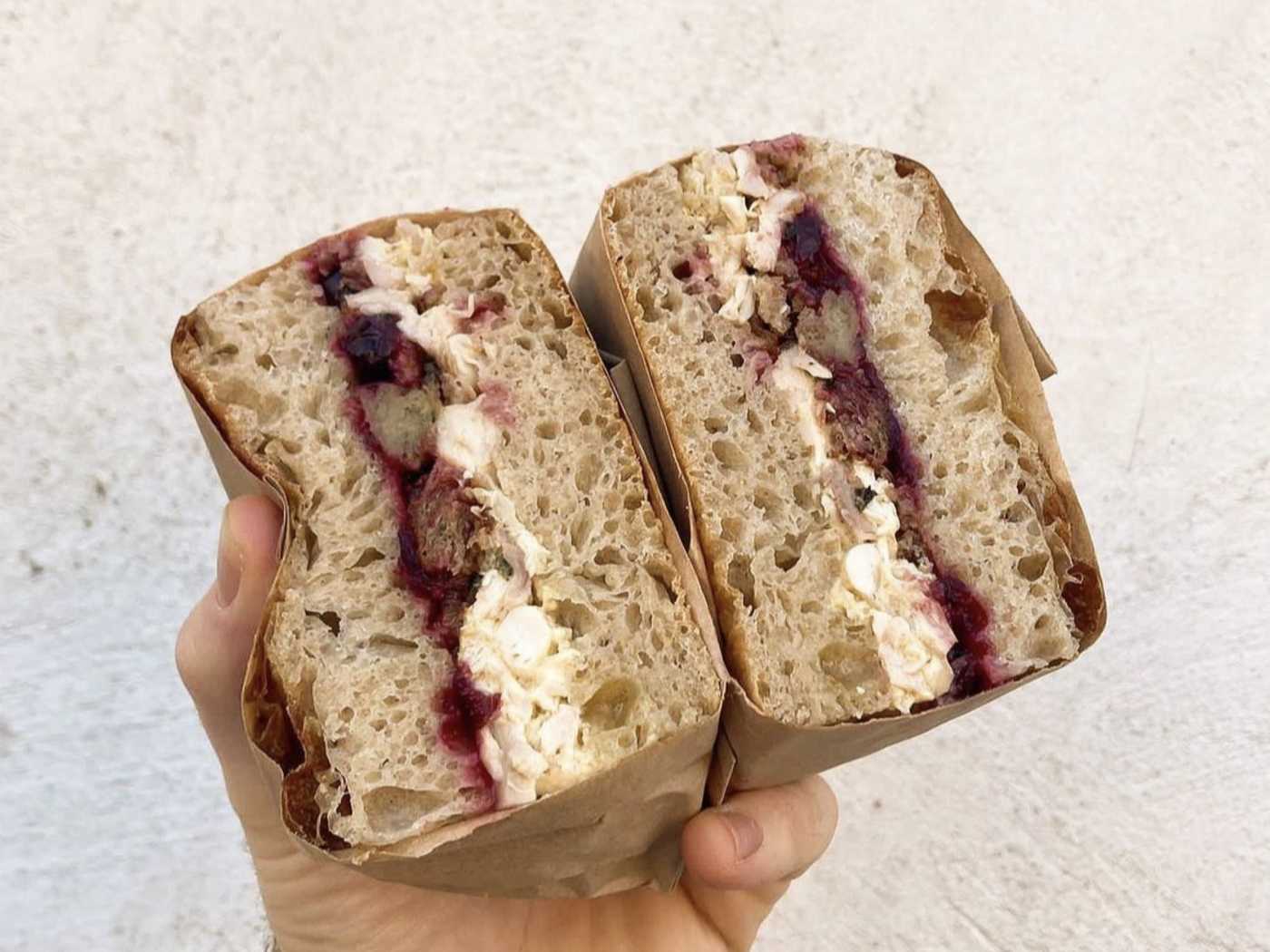 "Available from their Newington Green, Shoreditch, and Islington bakeries, Jolene’s sandwich is a classic combination on sourdough: smoked chicken, onion and sage mayo, pickled red cabbage, and cranberry sauce. You can’t go wrong, really." - Jake Oliver