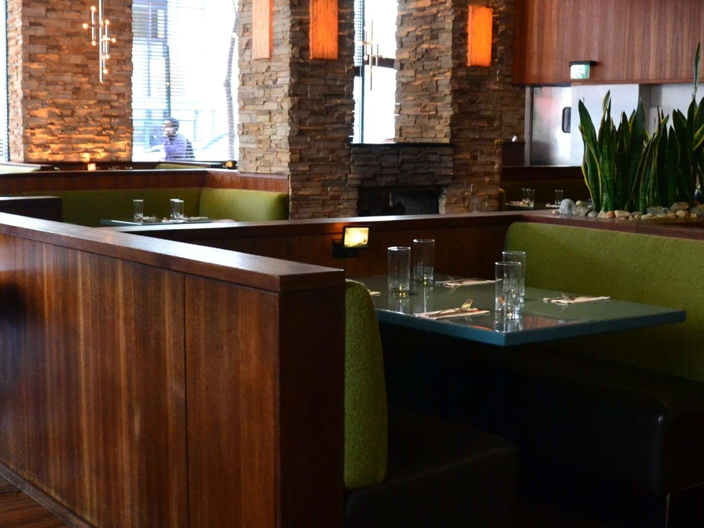 Customer service was great, food always yummy, hats off to the kitchen, mod designs with the built-in stone fireplace gives a funky throwback vibe. Only negative was the air was on, definitely made for a chilly brunch. Considering it was already a very very windy day. Matter fact, soo much so that outdoor seating has to end, patrons were moved inside due to the winds knocking table umbrellas down.
