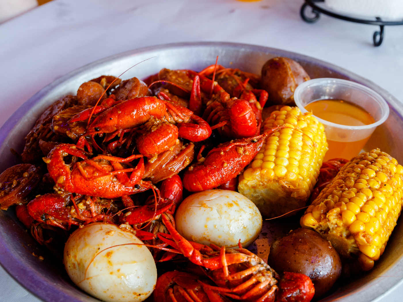 Seafood boils, fried baskets, wings, beer, and small plates