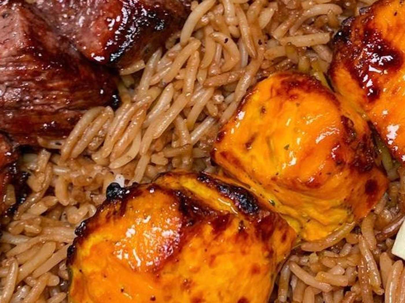 We chose to get the largest platter: the Combo 2 which is almost $50 and includes 3 types of kababs and rice (we got half green rice, half brown rice). The green rice was a definite standout, we could almost just eat it by itself. The brown rice was a great vessel for the kabab, but it wasn't anything special compared to the green rice. The green rice is only available on weekends, so I highly recommend going on the weekends for it. The chicken kabab was nice, and so was the beef tikka (both 8.5/10). Compared to those, the chapli kabab didn't have as great of a texture, but it still wasn't bad. The roasted tomato was a nice refreshing touch. The salad that it came with was okay, nothing special, but there were sauces nearby to pour onto your plate if necessary.