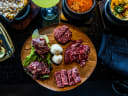 "Though this Heights restaurant does offer meats to grill tableside, it’s not your average Korean barbecue joint. The steakhouse merges the offerings of Korean barbecue and American steakhouses to create a best-of-both-worlds restaurant, with American wagyu and prime cuts of beef that come marinated, smoked, and/or dry-aged in-house. Feed your need for variety with its assortment of Korean dishes like rib-eye hotpot and short rib kimchi fried rice, or try the Karnivore platter, which comes with chef’s choice cuts of meat, plus an egg souffle, stew, a variety of pickled sides, scallion salad, and Korean ssam." - Brittany Britto Garley
