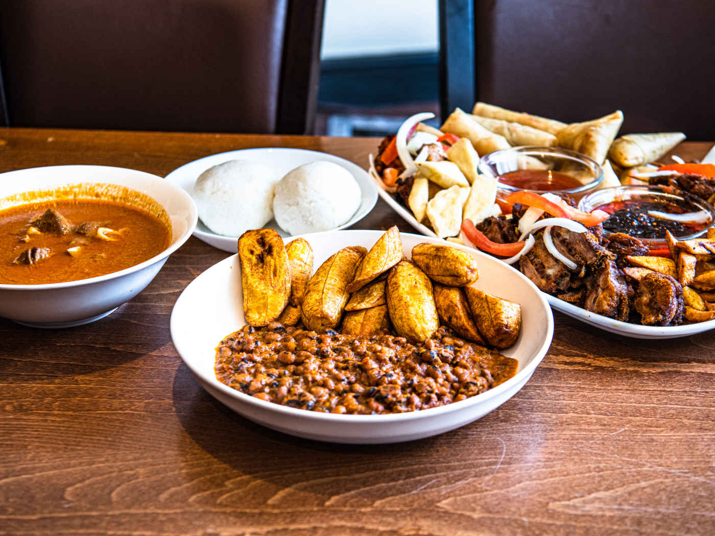 Ghanaian cuisine: stews, grilled fish, jollof rice, plantain