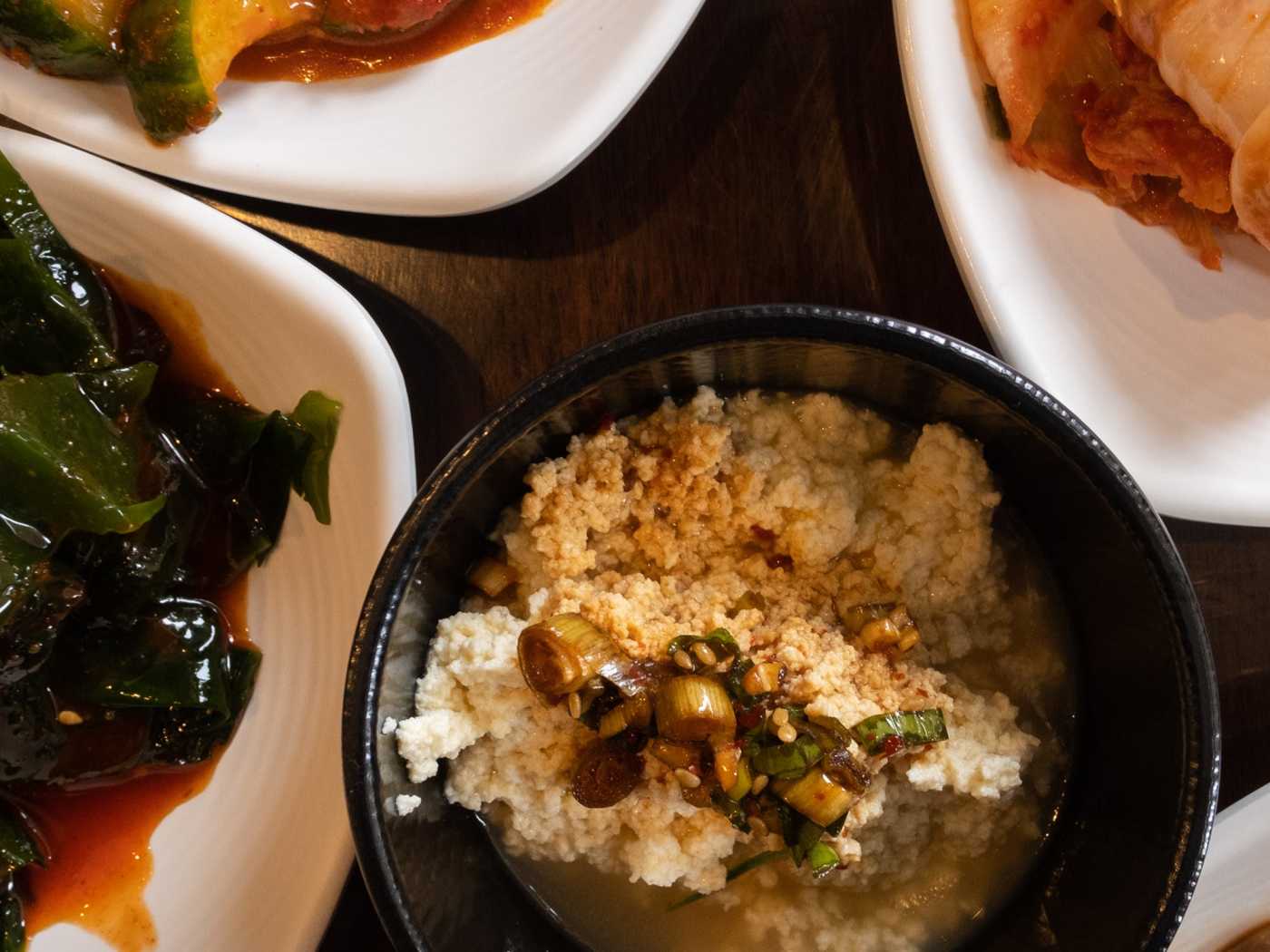 Food came promptly with Korean side dishes first (Kimchi, beans, bean sprouts, and pickled radish), and afterwards, the bowl of boiling Seafood Tofu soup and Purple rice inside a hot pot. I did not take any pictures at the beginning as I wasn't planning to do a review.