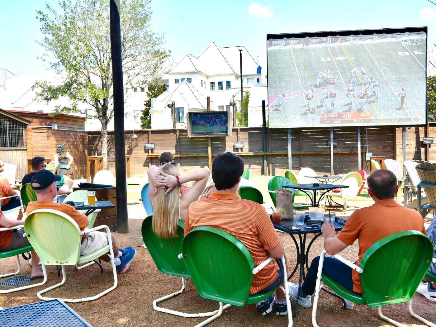 "Kirby Ice House has three locations around the Houston area, including the Woodlands outpost, which boasts the longest bar in Texas and a massive outdoor screen. With over 60 taps, a revolving door of food trucks, and a giant backyard-like patio that has some of the best dog-watching the city has to offer and a massive screen, this Space City staple is excellent for groups with big sports energy." - Brittany Britto Garley