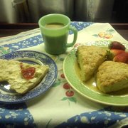 Walking in the door I was instantly struck by the wonderful smell of apples and cinnamon - and the fact that I couldn't read a single word on the wall, menu, or pastry cases! Taking the advice of the couple I asked the clerk "What's good?" only to get the response "What you like?" Stating I wasn't sure didn't seem to get me anywhere as I once again received "What you like?" as a response. Not wanting to drag this on for too long I responded "Something fresh, with fruit" and the man smiled and led me to the case where he stated "Get this, and this." Asking what they were (and having it written down so I could remember) I was told a Mexican Wedding Cookie with Guava and an Empanada de Calabaza (pumpkin.) $2.20 cents later I emerged with my prizes and dug in.