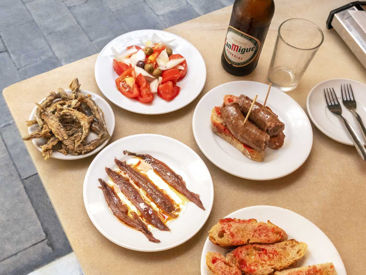 Traditional tapas bar with fried anchovies & house wine