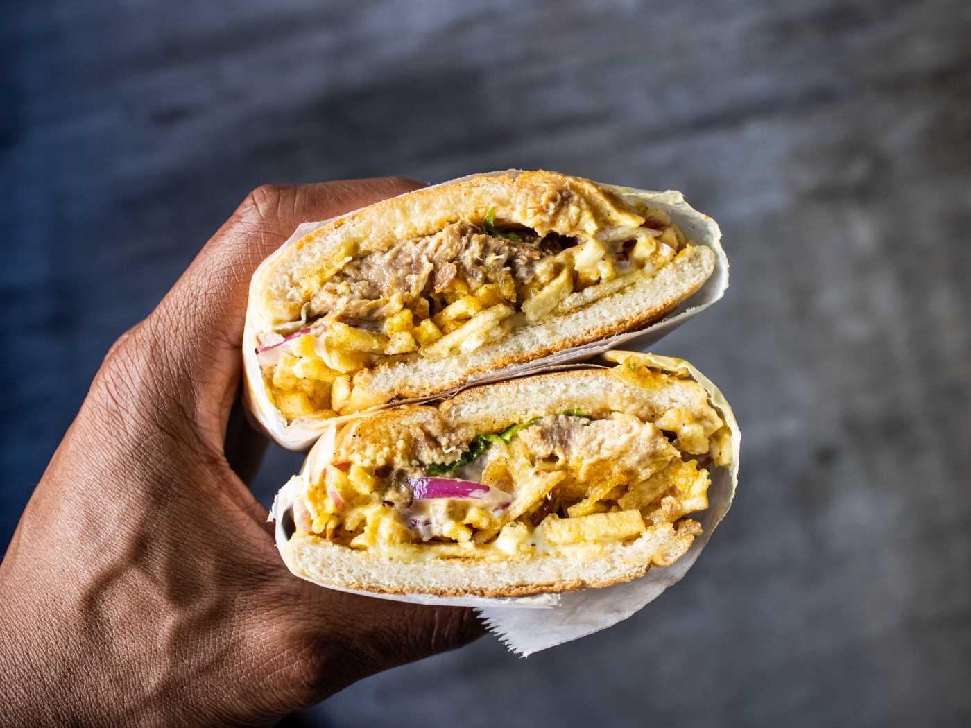 "La Tiendita II is a tiny Peruvian market in South Beach with a small but mighty selection of sandwiches. The chicken comes with shredded chicken, tomato, lettuce, a creamy sauce, and we’re pretty sure we saw potato chips in there too. The pork—their version of a Peruvian butifarra—uses a thick slab of tender pork, which contrasts nicely with crispy potato sticks and more of that creamy sauce. Since this is a market too, you can leave with other snacks for the day like chips and (if you have a cooler) grab a suspiro in the fridge for dessert." - ryan pfeffer