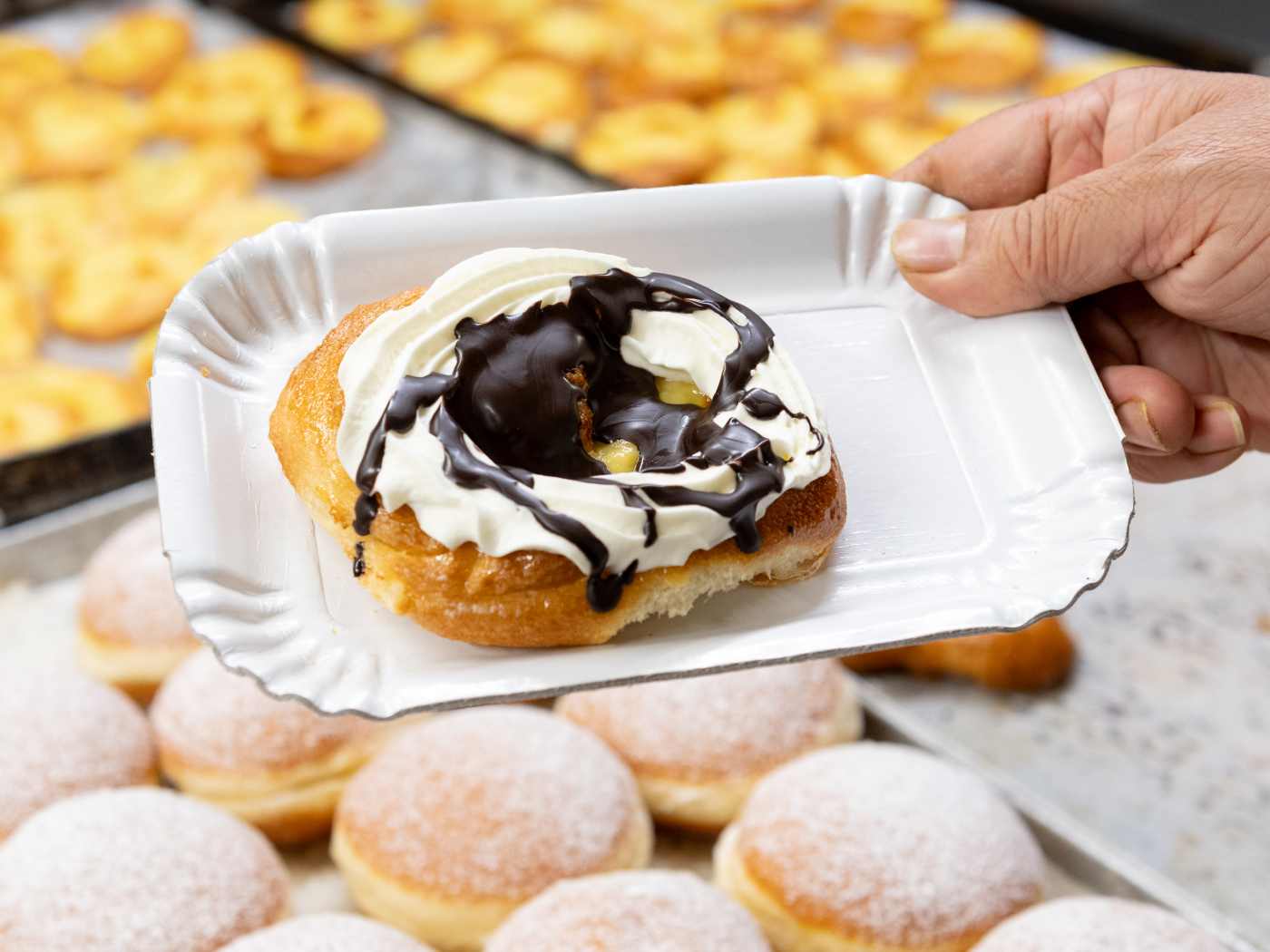"Lambiase Antonio Laboratorio Pasticceria is where you go when a late-night sugar craving hits. Go for the sorchetta—a flat, pillowy croissant piled with custard, whipped cream, and a drizzle of Nutella, dark chocolate, or pistachio (get the Nutella). Open all night (except on Monday), it's the kind of place that feels like a secret—until you notice the line of locals who are in on it, too.